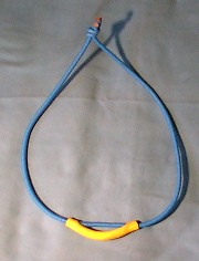 However, this isn't what I use these days. I just have a single piece of bungee, knotted at both ends, which is secured to the DV by the cable tie that keeps the mouthpiece in place. I don't need the necklace to be removable, as my backup DV is for my use only.